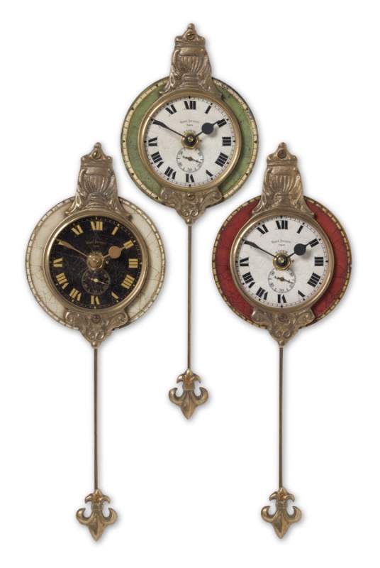 Hodiny Monarch, červené s krémovým ciferníkem.