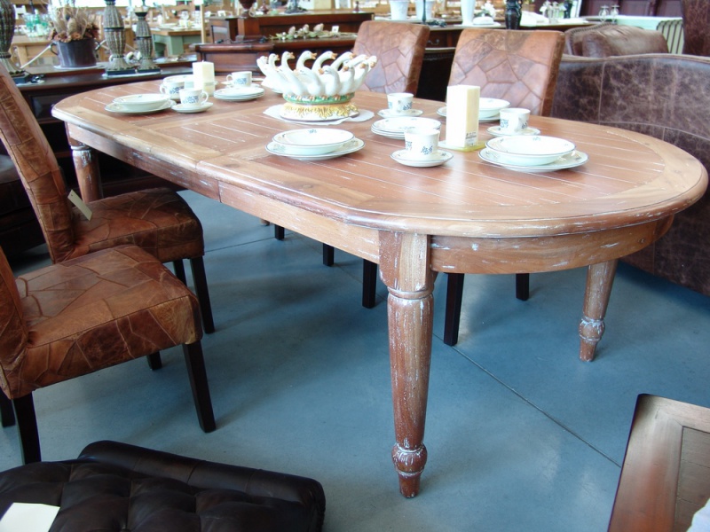 Jídelní stůl Market Extension Table, nastavitelná délka pojezdy o 55 cm, celková maximální delka je 260cm. Povrch stolu je patinován a zestařen.