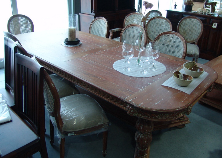 Dominantní a unikátní jídelní stůl Gothic má řezby na lubu pod deskou, nádherné řezané nohy a je z mahagonového dřeva.