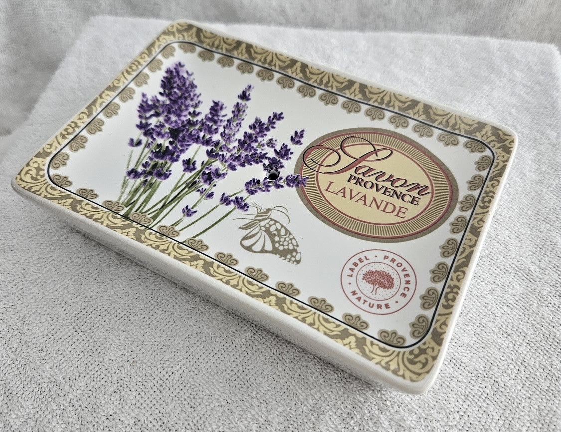 Keramická podložka pod mýdlo Levandule s dírkou na odkapávání.