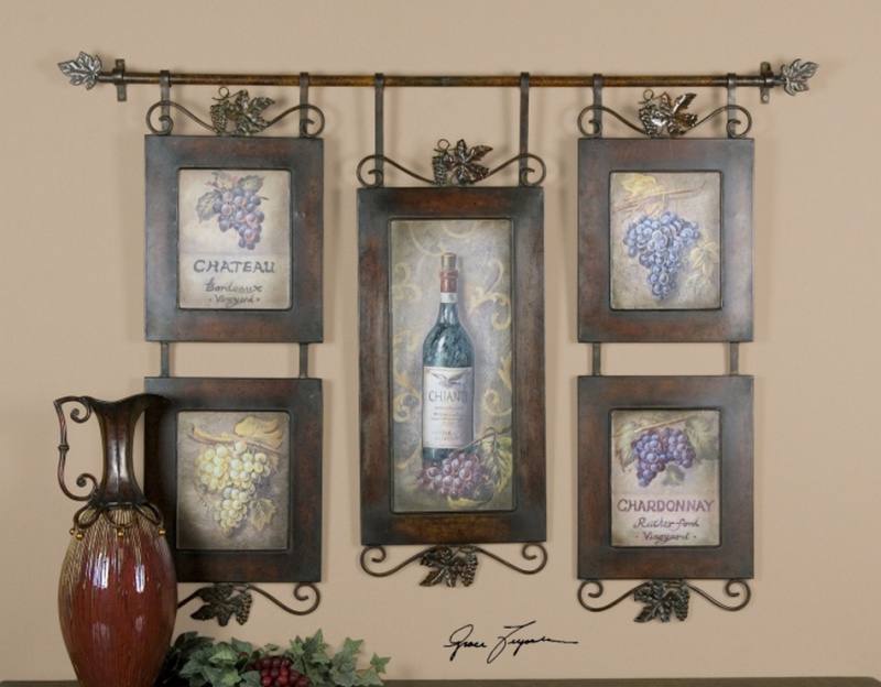Kolekce závěsných obrazů na zeď vyrobená z plechu, malovaný motiv vína.