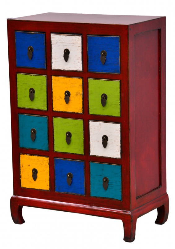 Nevšední kus nábytku, který zaujme na první pohled? Rozhodně tato nádherná červená komoda v Provence stylu! 12 různobarevných šuplíků a výrazný červený základ z ní dělá originální luxusní kousek, který zútulní každou místnost, a nad kterým se pozastaví každý, kdo kolem jen projde. Neváhejte ani minutu a pořiďte si neotřelý kousek z kvalitního masivního dřeva, který se hodí do každé místnosti vašeho domova!