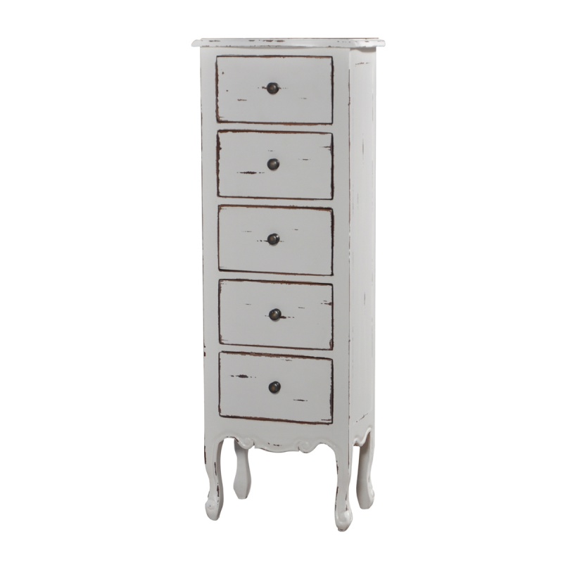 Hledáte-li jednoduchý, ale přes to neobyčejný a vkusný nábytek, určitě byste neměli přehlédnout komodu Coco Lingerie. Komodu lze díky její prostorové úspornosti a univerzálnímu vzhledu snadno zakomponovat do jakékoli světle laděné místnosti. Komoda je ve stylu Provence v bílé barvě s oprýskaným efektem a je vyrobena z mahagonového dřeva. Pět šuplíků lze prakticky využít pro úschovu čehokoli, co Vás jen napadne.