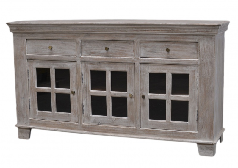 Netypická komoda Good Earth v bílé patině se stane milovanou součástí vašeho domova. Hodí se do každé místnosti, má velký úložný prostor se třemi skříňkami s prosklenými dvířky a třemi zásuvkami. Odkládací plocha báječně poslouží na odkládání vašich rodinných fotografií, krásnou lampu či květiny. Vintage komoda má navíc nádherně zpracovanou patinu, která se bude hodit do jakéhokoliv interiéru.