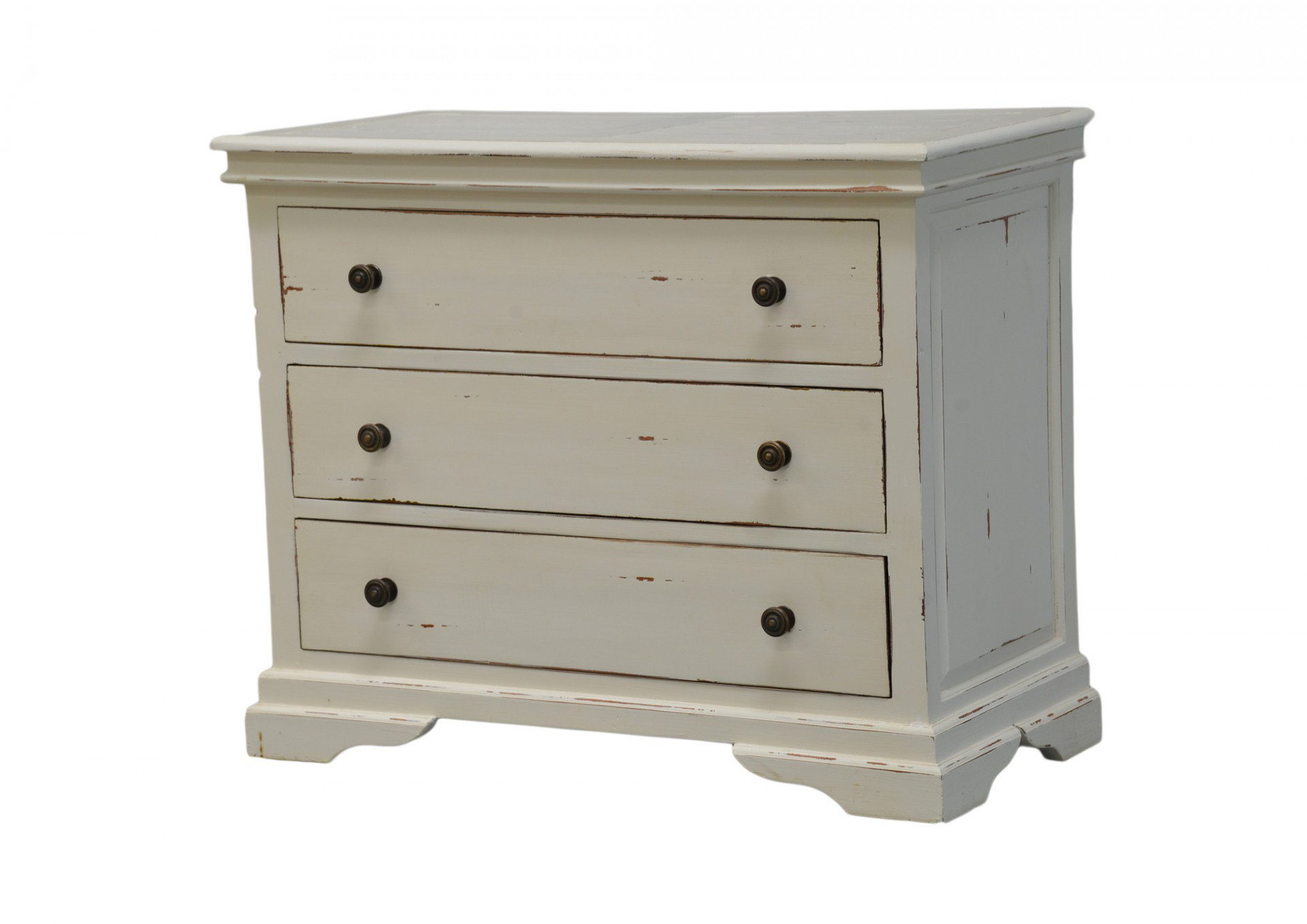 Masivní komodu Homestead, laděnou do stylu Provence, lze snadno zakomponovat do každé světlé ložnice romantického designu. Komoda je vyrobena z mahagonového dřeva v bílé patině s lehce odřeným efektem. Nejen, že svou něžnou elegancí podtrhne půvab vašeho pokoje, ale ohromí vás také svou efektivitou! Tři prostorné zásuvky zajistí ideální místo pro vaše oblečení. Chcete-li tedy nejen vkusně vypadající nábytek, ale také dostatečně veliký univerzální úložný prostor, je právě tato komoda tím, co hledáte!