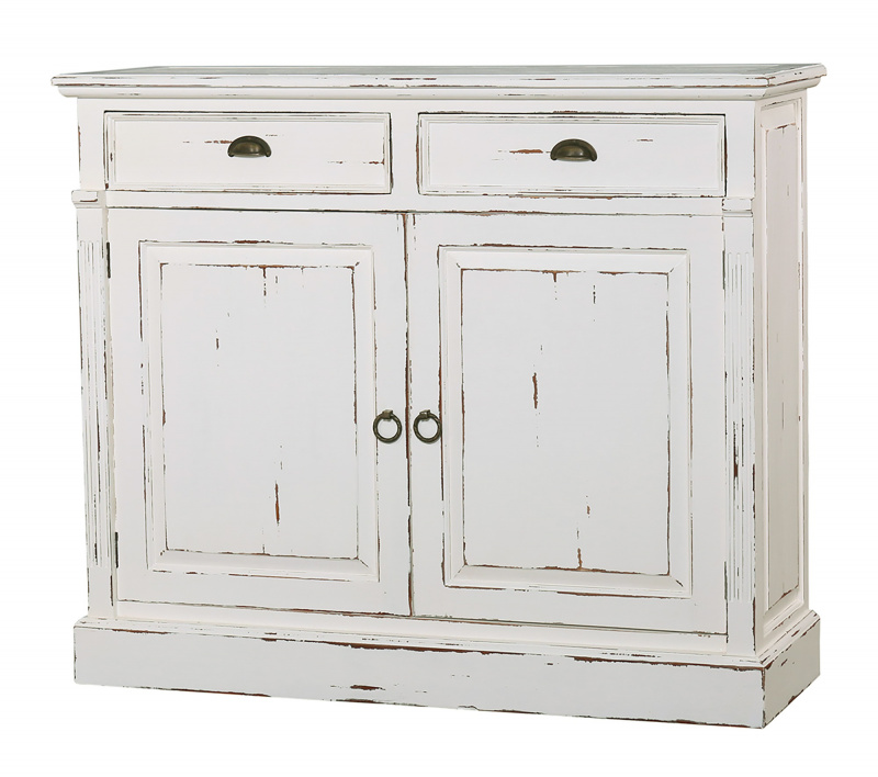 Vintage komoda Hudson si díky své laskavé bílé patině snadno získá srdce nejednoho zákazníka! Tato barva vyzařuje klid a teplo a je zásadní předností tohoto kousku! Vašemu domovu rázem vdechne kouzlo romantické Provence a teplo rodinného krbu. Komoda má praktický úložný prostor a dvě šuplata s decentními madélky. Vyrobena je z kvalitního mahagonového dřeva.
