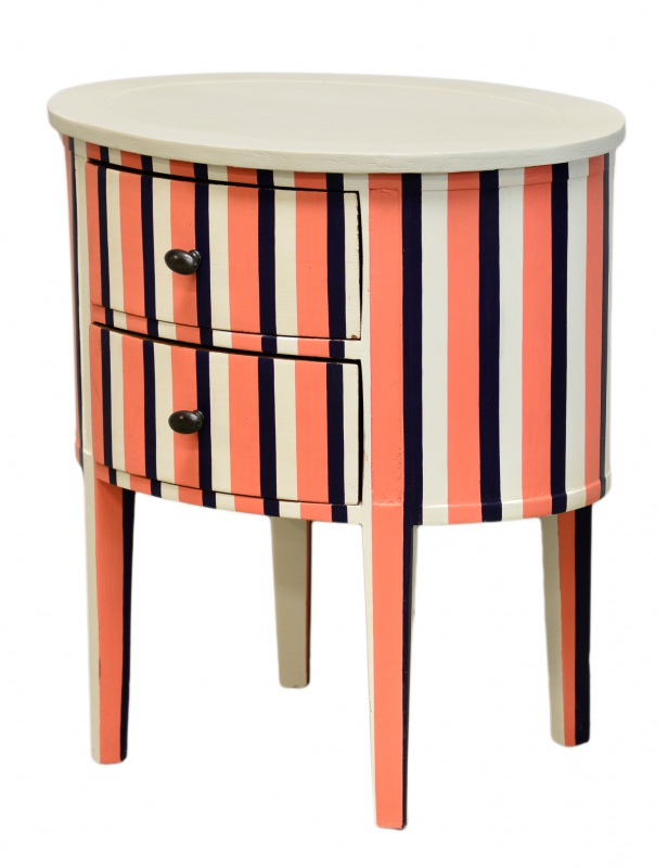 Přikrášlete některou z místností vašeho domu vkusnou a atypickou komodou Lou Lou. Pro komodu velmi netradiční, oválný tvar, rúžové proužky a skutečnost, že komoda je usazena na delších rovných nohách. To jsou hlavní faktory, které společně s rovným povrchem, udávajícím jednoduchou strohost, tvoří tento konkrétní kousek tak výjimečným a odlišným od ostatních. Komoda má dvě praktické zásuvky.