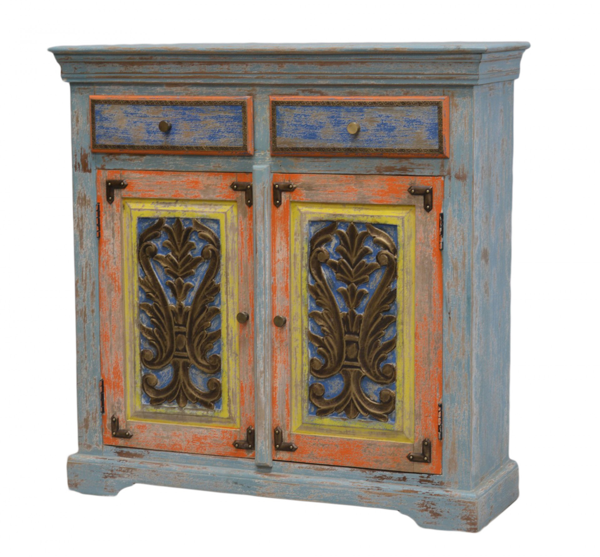 Nádherná malovaná skříňka Maharaja v tmavším odstínu vás nadchne svou originalitou a dokonalým zpracováním. Romantický motiv v příjemných barvách prohřeje a zútulní každou místnost vašeho domu. Komoda z masivního dřeva má dvě zásuvky a úložný prostor s dvířky, takže je navíc opravdu praktická. Nebojte se neokoukaného vzhledu a pořiďte si tento luxusní kousek!