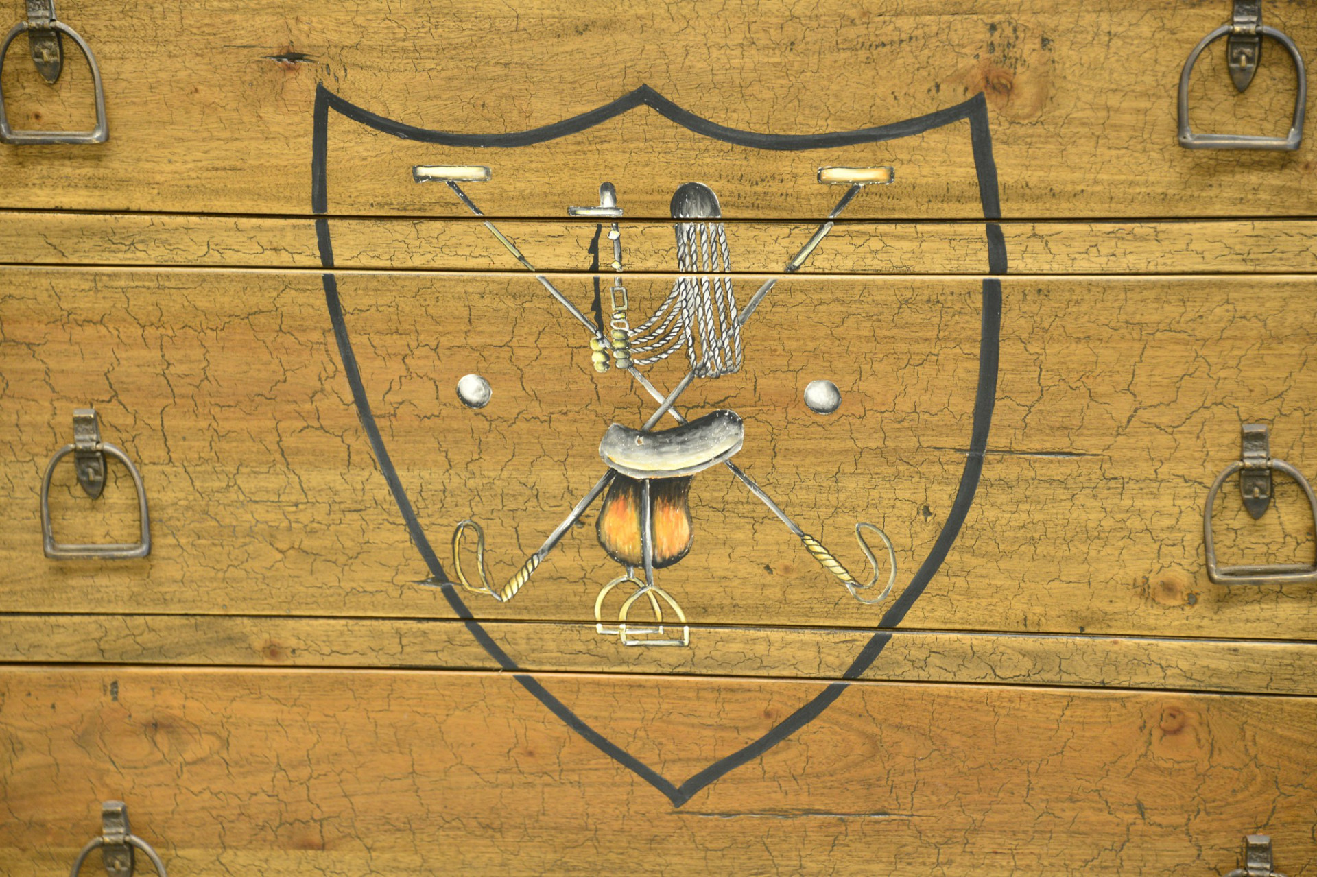Jak už napovídá samotný název této dechberoucí komody, při pohledu na ni se člověku může vybavit jediné. Majestátní kolektivní sport s hlubokými anglickými kořeny, majestátní zvířata a jejich týmově odění jezdci - Pólo. Ať už jste vášnivými jezdci, milovníky koní, nebo jen zbožňujete okázalost vznešené Anglie, je tato vkusná a přepychová komoda ideální volbou. Nechte se hýčkat v zajetí dokonalé, nenahraditelné atmosféry. Na komodě je vymalovaný motiv sportu pólo a madla jsou v podobě jezdeckých třmínků. Jednoduchá, avšak výstižná kombinace, která sama o sobě hravě postačí k utvoření tolik osobitého dojmu! Komoda je vyrobena z luxusního mahagonového dřeva světlé přírodní barvy, které disponuje vysokou kvalitou a zaručuje dlouholetou životnost produktu. Celý její povrch je ve stylovém kraulovém laku.