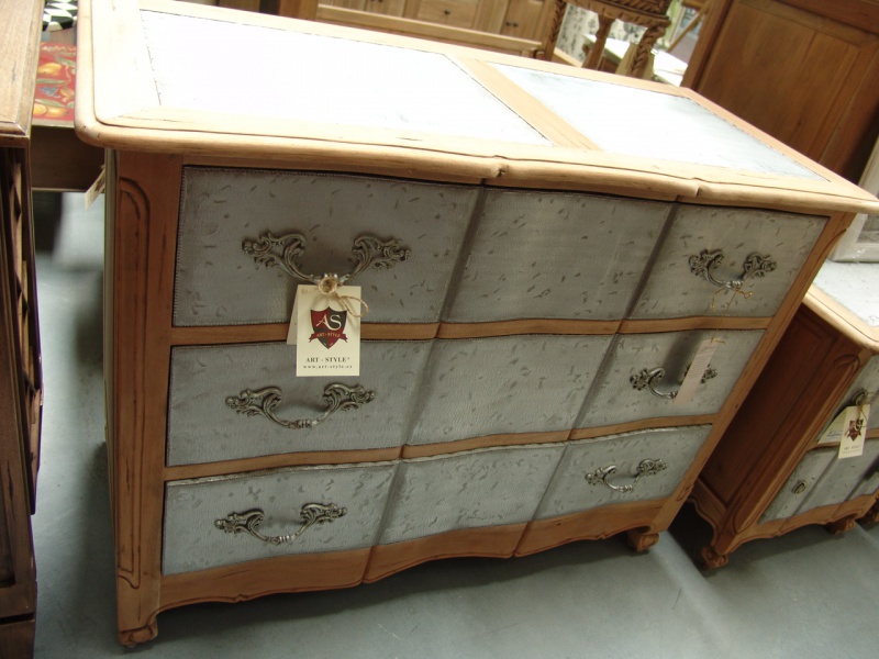 Kombinování materiálu je hodně odvážné, když se však provede vkusně a s citem, výsledek stojí za to! Přesně takový případ je tato provence komoda, kombinující prémiové mahagonové dřevo a kvalitní plechy, ze kterých jsou vyrobeny tři zásuvky a odkládací plocha tohoto kousku. Plechy mají stříbrno-šedou barvu, která tvoří krásný kontrast s hnědou barvou dřeva. Moderní kombinaci materiálů vyvažuje elegantní romantické vyřezávání a kovové úchyty. Komoda je opravdu jedinečná, zaujme na první pohled a ozvláštní váš obývací pokoj, pracovnu i vstupní halu!