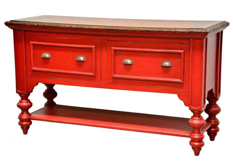 Úžasná komoda Provence ve výrazné červené patině mahagonového dřeva a hnědou deskou je unikátní kousek. Její vyřezávané lišty na okrajích a zajímavé nohy z ní dělají neotřelý solitér, který si zaslouží místo ve vašem obývacích pokoji, nebo ve vstupní hale či chodbě. Komoda je vyrobena celá z masivu a má dvě prostorné zásuvky.