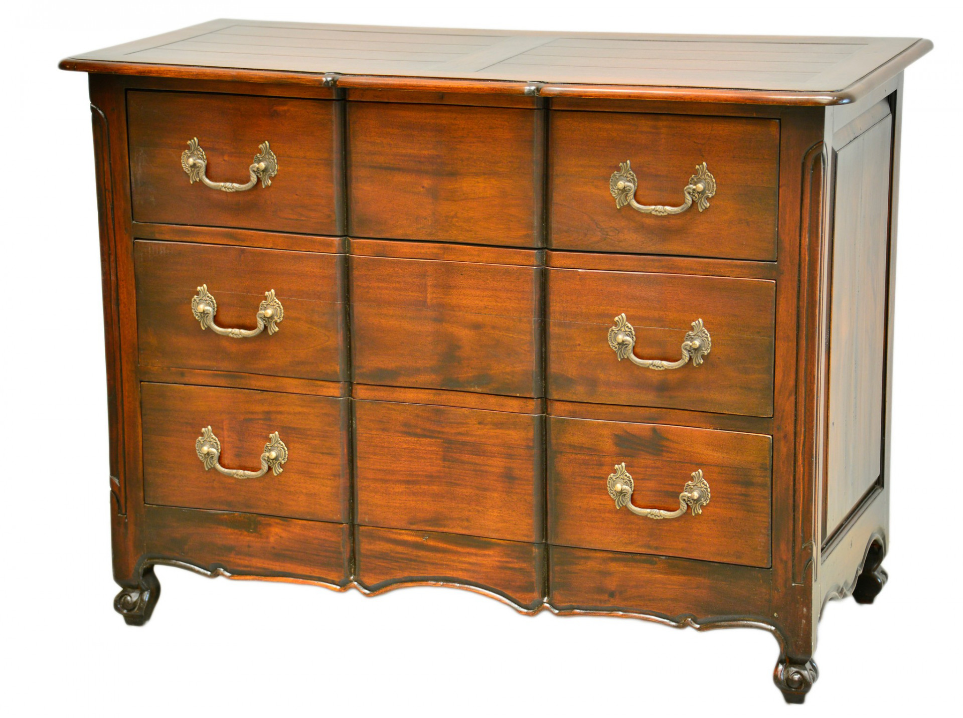 Přepychová provence komoda si vás díky své originalitě získá na první pohled. Je vyrobena z kvalitního masivního mahagonového dřeva, provedena v hnědé, jemně zastřené, mahagonové patině. Má tři prostorné zásuvky, do kterých uložíte oblečení i dokumenty, takže se hodí do obývacího pokoje, ložnice i pracovny. Jemné vkusné vyřezávání ve spodní části skřínky a zdobná madla z ní dělají luxusní kousek, který bude obdivovat každá návštěva.