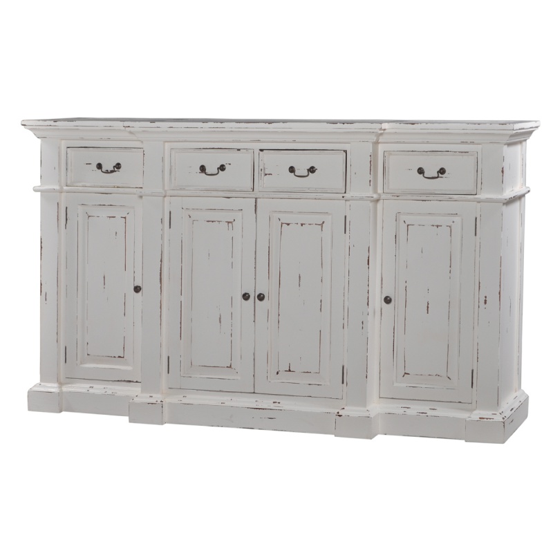 Prostorná komoda/bufé z mahagonu, bílá zestařená barva, 4 x šuple, 4 x dveře.