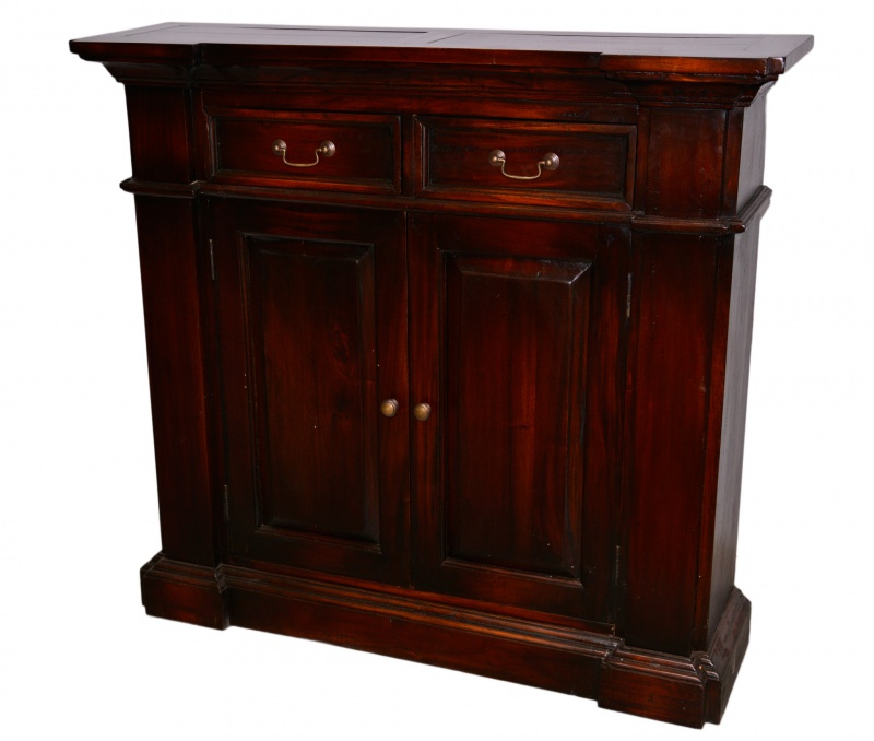 Okouzlete sebe i každou vaši návštěvu historicky vyhlížejícím, ale přes to nadčasovým kouskem! Neváhejte a vsaďte na ideální kombinaci kvality a krásného zpracování a pořiďte si stylovou a velmi praktickou, luxusní masivní komodu Roosevelt. Je vyrobena z nosného mahagonového dřeva zaručujícího nevšední a nadčasovou kvalitu. Rustikální vintage komoda je v okázalém, temně hnědém odstínu, má dvě dvířka, za kterými se skrývá praktický úložný prostor a pár šikovných šuplíků. Dodejte svému domovu přepych a přeneste se s touto komodou do elegantní a ušlechtilé konzervativní Anglie.