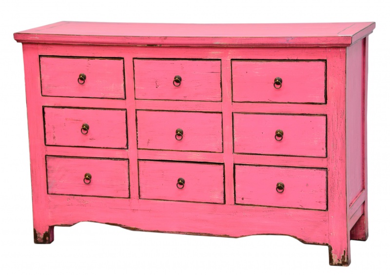 Luxusní komoda, která ozvláštní snad jakýkoli interiér a zaujme každého, kdo vstoupí do místnosti, může být vaše! Pořiďte si nevšední komodu ve výrazném růžovém odstínu, který i přes svou výraznost ladí ke světlému i tmavému nábytku! Provence komoda z masivního dřeva má 9 zásuvek, které poslouží k ukládání vašeho oblečení i dokumentů. Rozjasněte vaši ložnici, obývací pokoj i halu a nebojte si být odlišní!