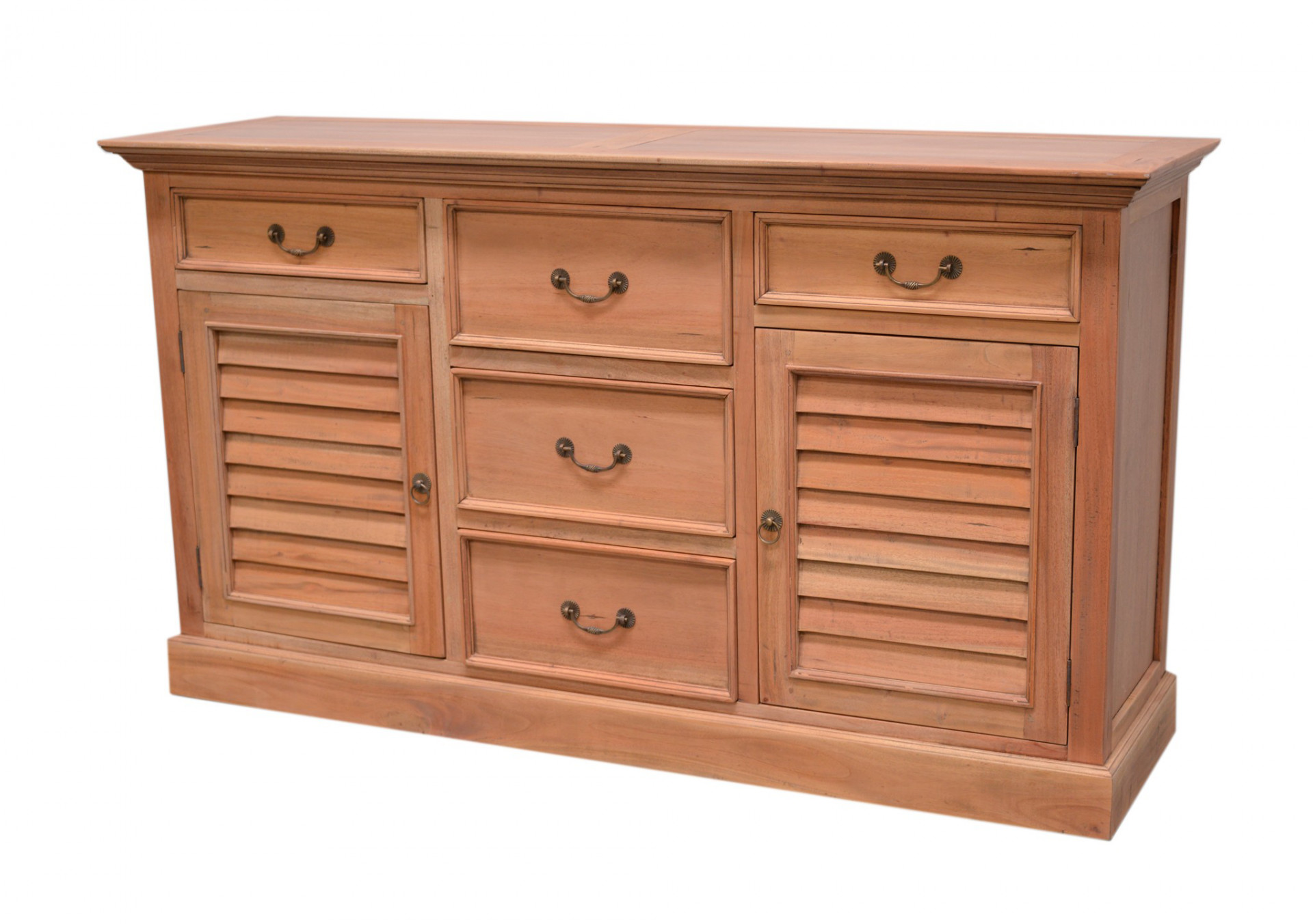 Sháníte krásný kus nábytku do jakékoli místnosti vašeho domova, který jí dodá vítaný nádech starobylého venkovského Provence stylu? V tom případě je nádherná, prostorná komoda Shutter z masivního mahagonového dřeva to, co hledáte! Je velice praktická a prostorná, obsahuje pět zásuvek a dvě shutter dvířka, za kterými se skrývá další úložný prostor. Komoda je ozdobena kovovými úchyty a celý kus má vkusnou jednoduchou řezbu. Všechny tyto zmíněné faktory dohromady tvoří dokonale vypadající i sloužící prostor pro ukládání jakýchkoli věcí, které jsou potřeba uschovat.