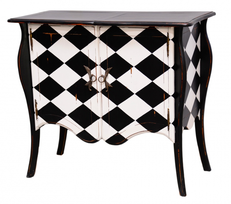 Toužíte-li po nevšední originalitě a nevídaném kousku nábytku, který rozjasní a zpestří vaši místnost, je komoda Suisse s károvaným černobílým motivem tím, co hledáte. Výjimečná kovová madélka a dynamický tvar komody přidávají k modernímu vzoru i starobylou eleganci, čímž vzniká brilantní spojení! Tato neobyčejná a zajímavá komoda je vyrobena z mahagonového dřeva, což zaručuje její dlouholetou životnost, a disponuje dvěma dvířky skrývajícími praktický úložný prostor. Komoda je ideální volbou pro odvážné a ctižádostivé osoby, zakomponovat ji lze jako do moderního, tak do klasického interiéru. Fantazii se zde meze nekladou!