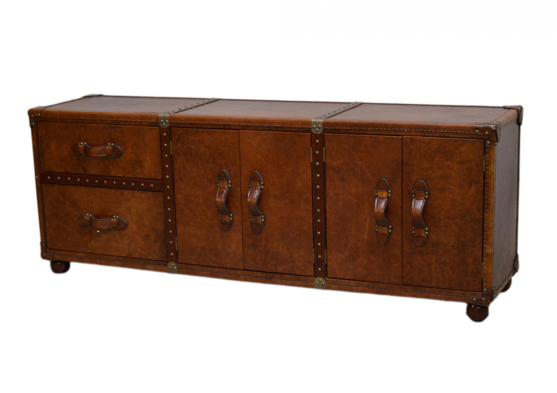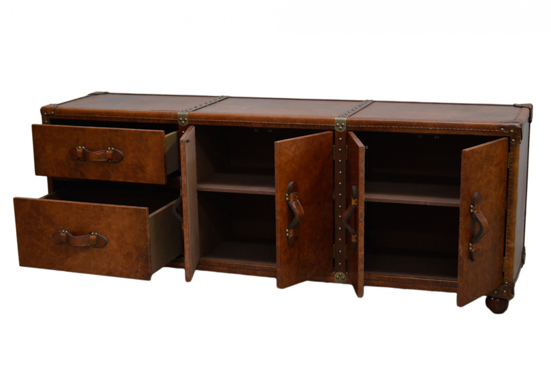 Komoda v hnědé vintage kůži, 4x dveře, 2x šuple