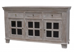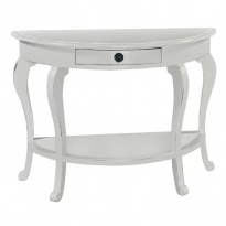 Romantická menší komoda Valbonne si vás okamžitě získá. Propracovaný romantický vzhled je podpořen zaoblenými nohami a krásnými kovovými úchyty s motivem listů. Komoda je vyrobena z masivního mahagonového dřeva, natřená bílou barvou a doladěna jemnou patinou. Krásně se hodí do obývacího pokoje i ložnice, každou místnost krásně zútulní a přirozeně prosvětlí.