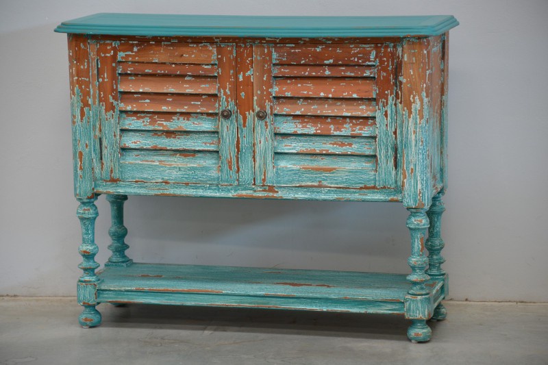 Komoda Orleans Sideboard je vyrobena z mahagonového dřeva v prémiové patině - zeleno-hnědá barva. Styl dveří je zvaný shutter.