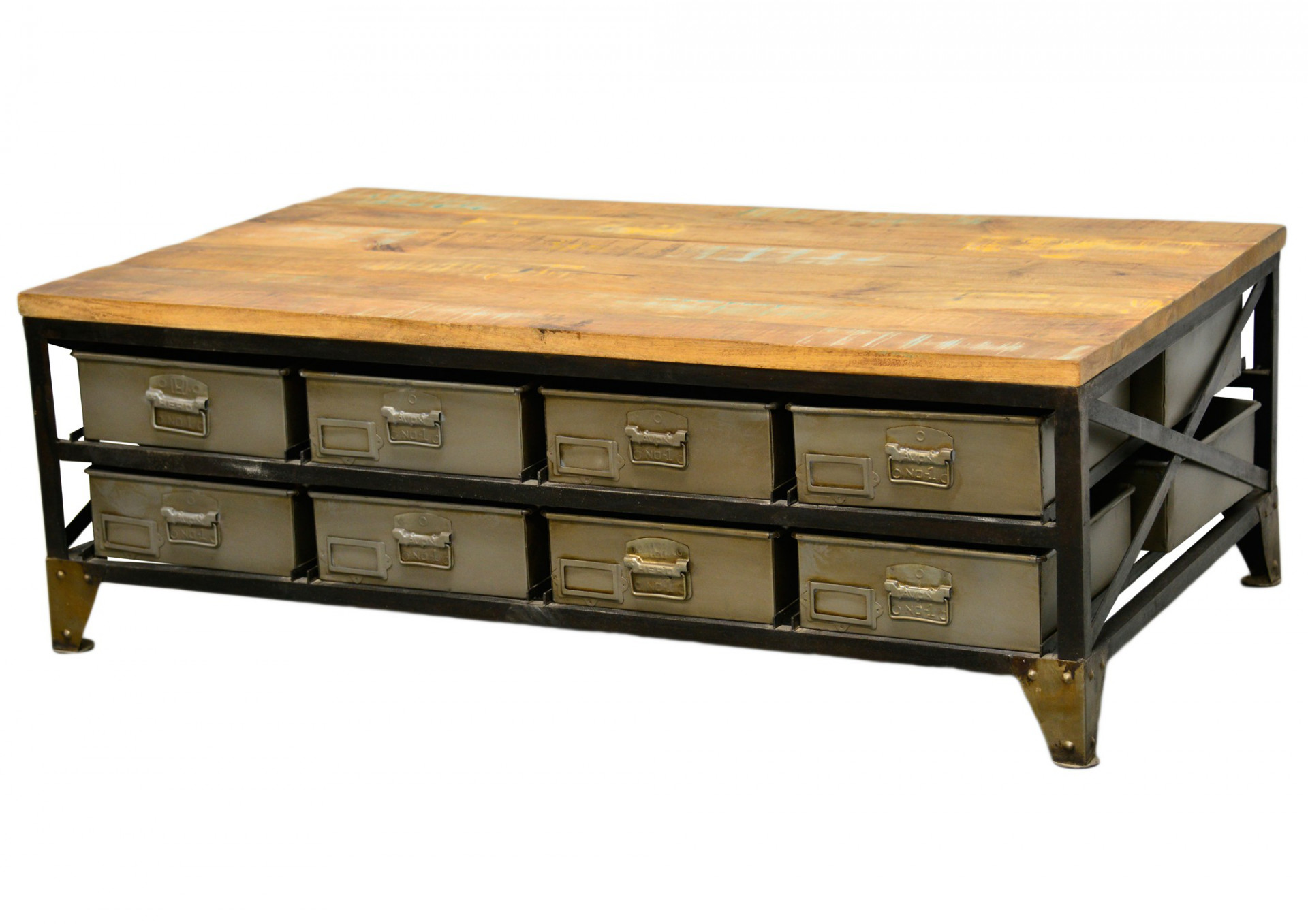 Konferenční stolek s 16-ti plechovými šuplíky ve vintage stylu vytvoří ve vašem obývacím pokoji zajímavou atmosféru. Industriální styl je teď in! Buďte i Vy!