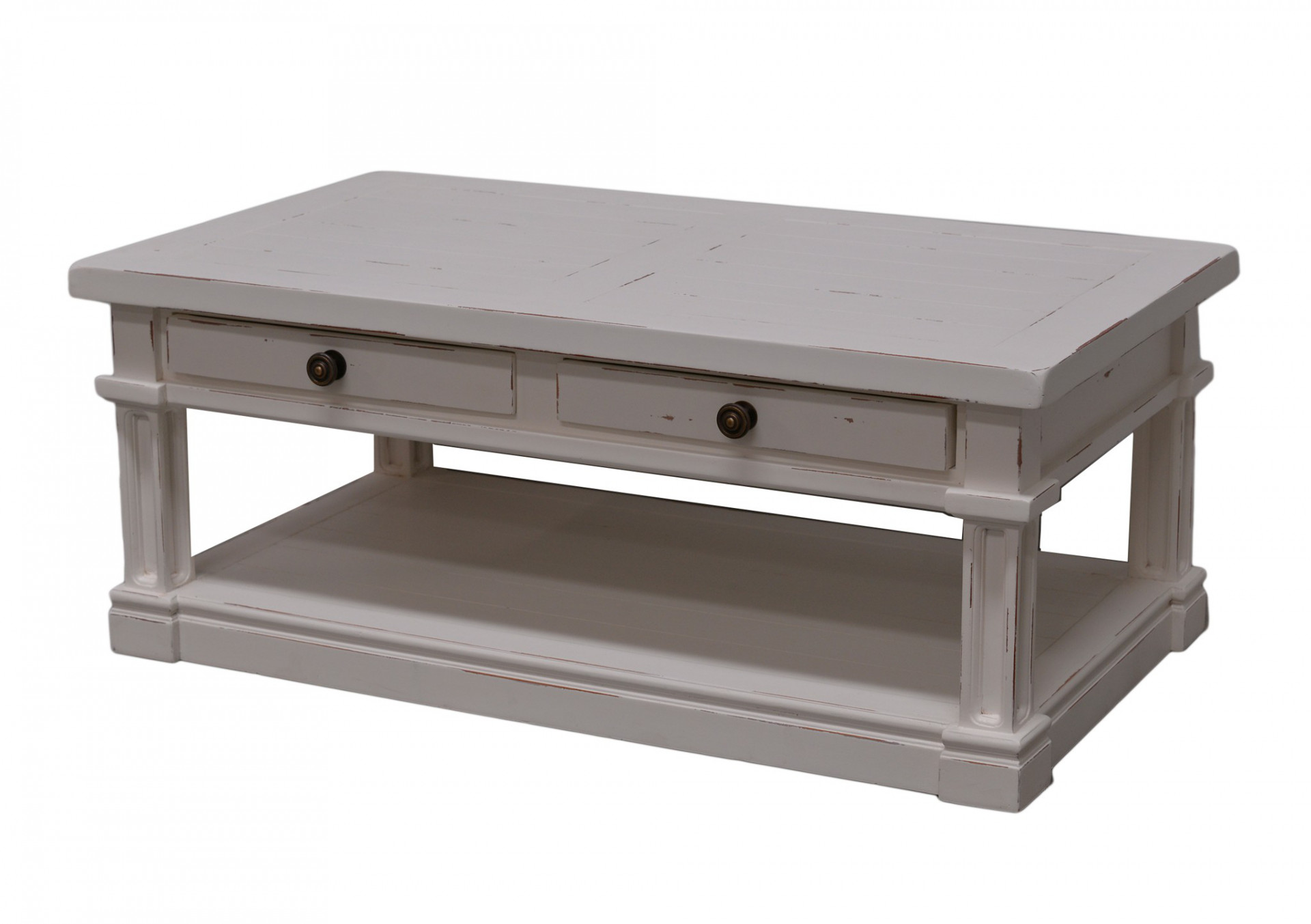 Kvalitní a prostorný konferenční stůl Roosevelt se stane luxusní dominantou vašeho obývacího pokoje. Konferenční stůl Roosevelt v bílé patině splňuje všechna kritéria dokonalého stolku - je z mahagonového dřeva, široký je 120 cm, obsahuje dva praktické šuplíky a úložný prostor. Masivní dřevo v odstínech bílé patiny mu dodává na eleganci a navíc zaručuje dlouhou životnost.