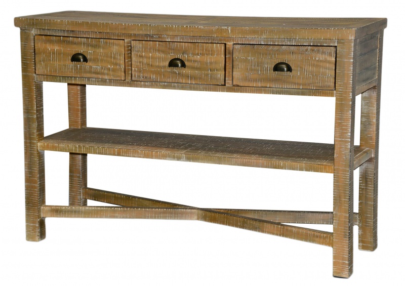 Netrpělivě projíždíte internetové obchody s nábytkem, ale stále nenarážíte na to pravé? Tento okázalý konzolový stolek může vše okamžitě změnit! Tento kousek vyniká svým dokonale působivým vzhled – nevtíravě jednoduchý a decentní, ale přesto impozantně působící a nápaditý! Nadčasový design tohoto stolku umocňuje především jeho přírodní motiv velmi kvalitního dřeva, střídmě doladěný jemnou patinou, a skvěle řešené designové uspořádání, které ideálně doplňují vkusné úchytky. Jako vhodný úložný prostor na veškeré dokumenty poslouží tři rozkošné šuplíčky a odkládací plochu lze doplnit například proutěnými košíky. Vsaďte na nevšední originalitu a výjimečnou kvalitu!