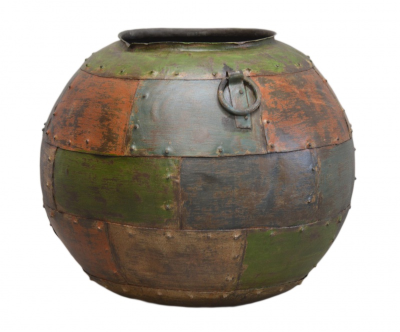 Plechová kulatá nádoba, kterou si například můžete umístit ke vstupním dveřím a ozdobit si vstup do svého domu.