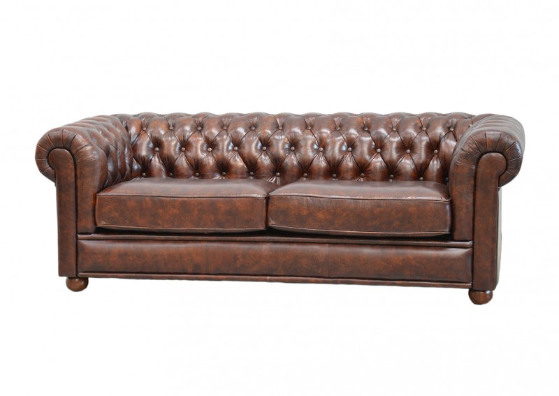 Kožená sedačka (dvojsedák velký) v anglickém stylu Chesterfield, kůže je v úpravě Vintage. Sedačka působí svou barvou kůže a provedením velice luxusně, kostra je dřevěná z masivu.
