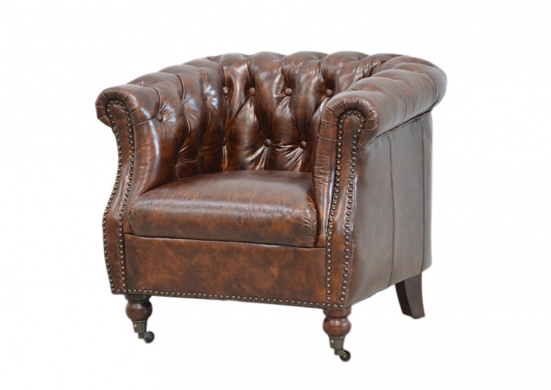 Líbí se vám mohutný nábytek, který je hned na první pohled dominantou místnosti? A co takhle elegance v podobě kvalitní kůže? Pořiďte si do vašeho obývacího pokoje, ložnice či pracovny robustní kožené Vintage křeslo se stabilní kostrou z masivního dřeva. Oválné opěradlo a kovové zdobení umocňuje elegantní vzhled křesla. Hnědá kůže je na první pohled velice kvalitní s jemně zastřeným povrchem a stylovým prošíváním, který jen upevňuje originalitu tohoto kousku.