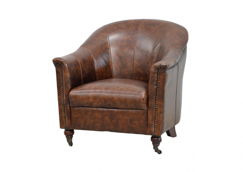 Líbí se vám mohutný nábytek, který je hned na první pohled dominantou místnosti? A co takhle elegance v podobě kvalitní kůže? Pořiďte si do vašeho obývacího pokoje, ložnice či pracovny robustní kožené Vintage křeslo se stabilní kostrou z masivního dřeva. Oválné opěradlo a kovové zdobení umocňuje elegantní vzhled křesla. Hnědá kůže je na první pohled velice kvalitní s jemně zastřeným povrchem, který jen upevňuje stylovost tohoto kousku.