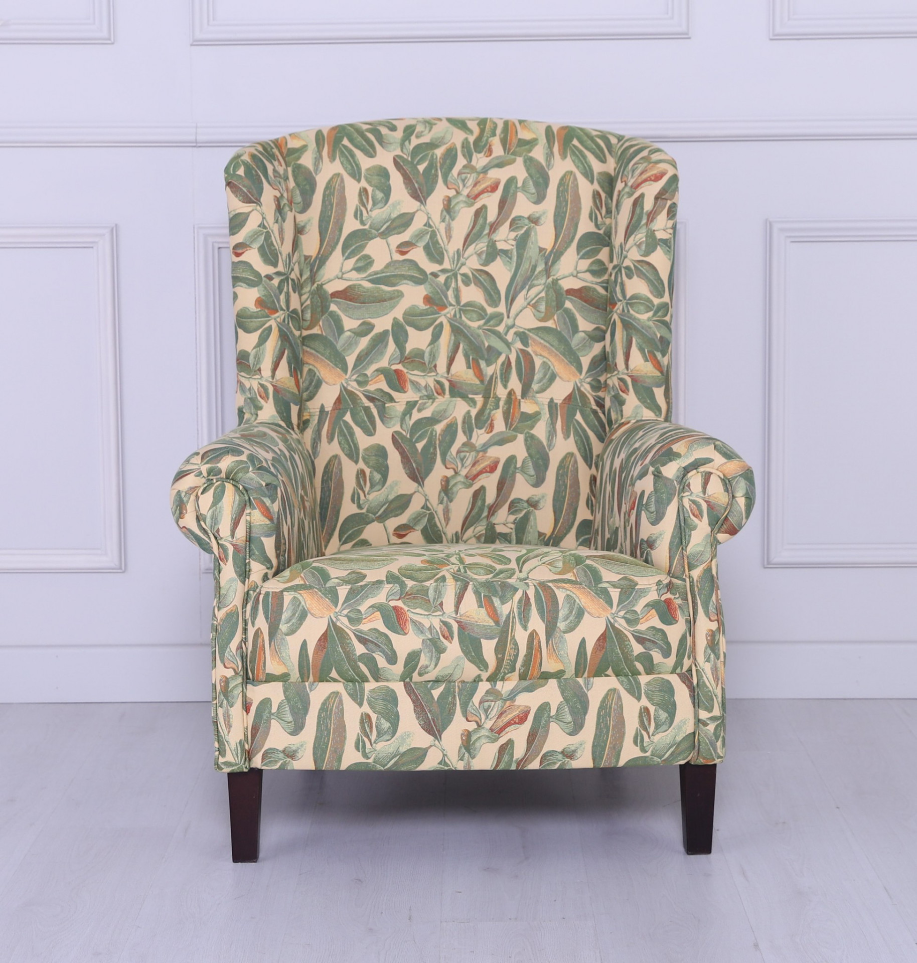 Nádherné křeslo Francis se stane doménou vašeho obývacího pokoje, ložnice či pracovny. Jemný motiv se zelenými lístky a kvalitní tmavé nohy z masivního dřeva Vás dokonale učarují. Zabořte se do křesla s dobrou knihou a užívejte si pohodlí, které vám tento kus nábytku poskytuje.