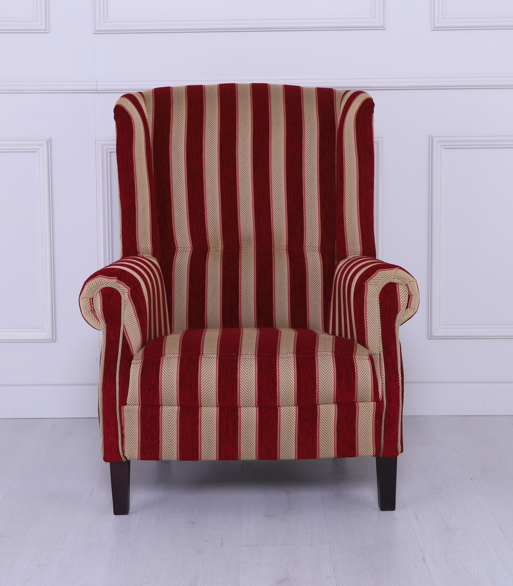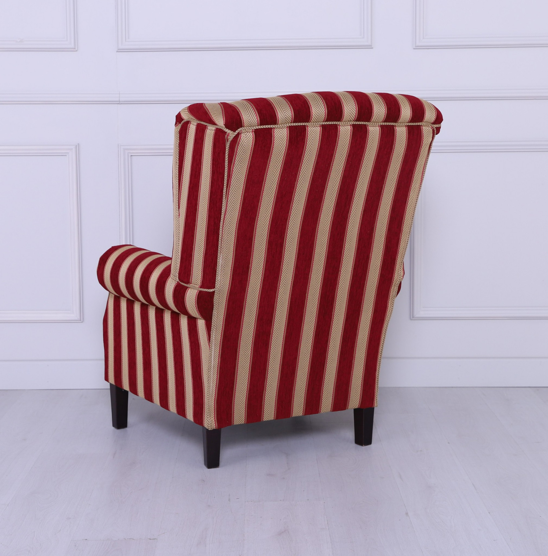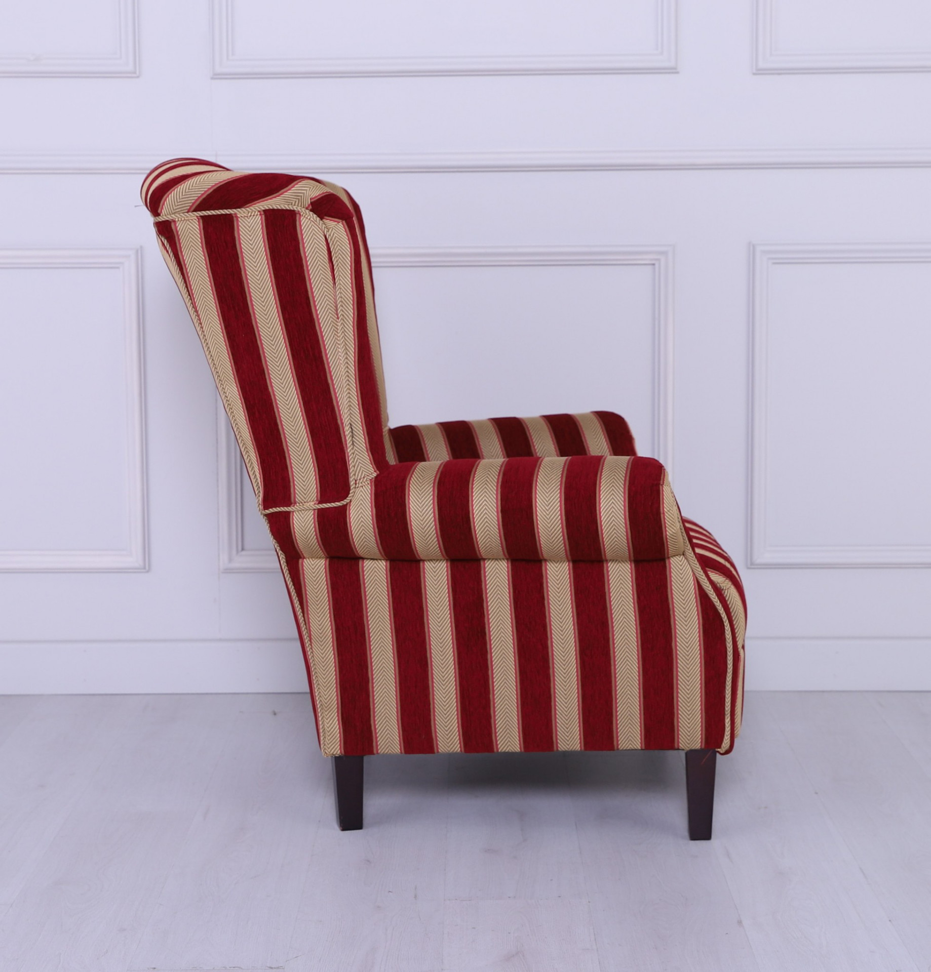 Nádherné křeslo Francis se stane doménou vašeho obývacího pokoje, ložnice či pracovny. Luxusní potah se zlato-červenými pruhy a kvalitní tmavé nohy z masivního dřeva Vás dokonale učarují. Zabořte se do křesla s dobrou knihou a užívejte si pohodlí, které vám tento kus nábytku poskytuje.