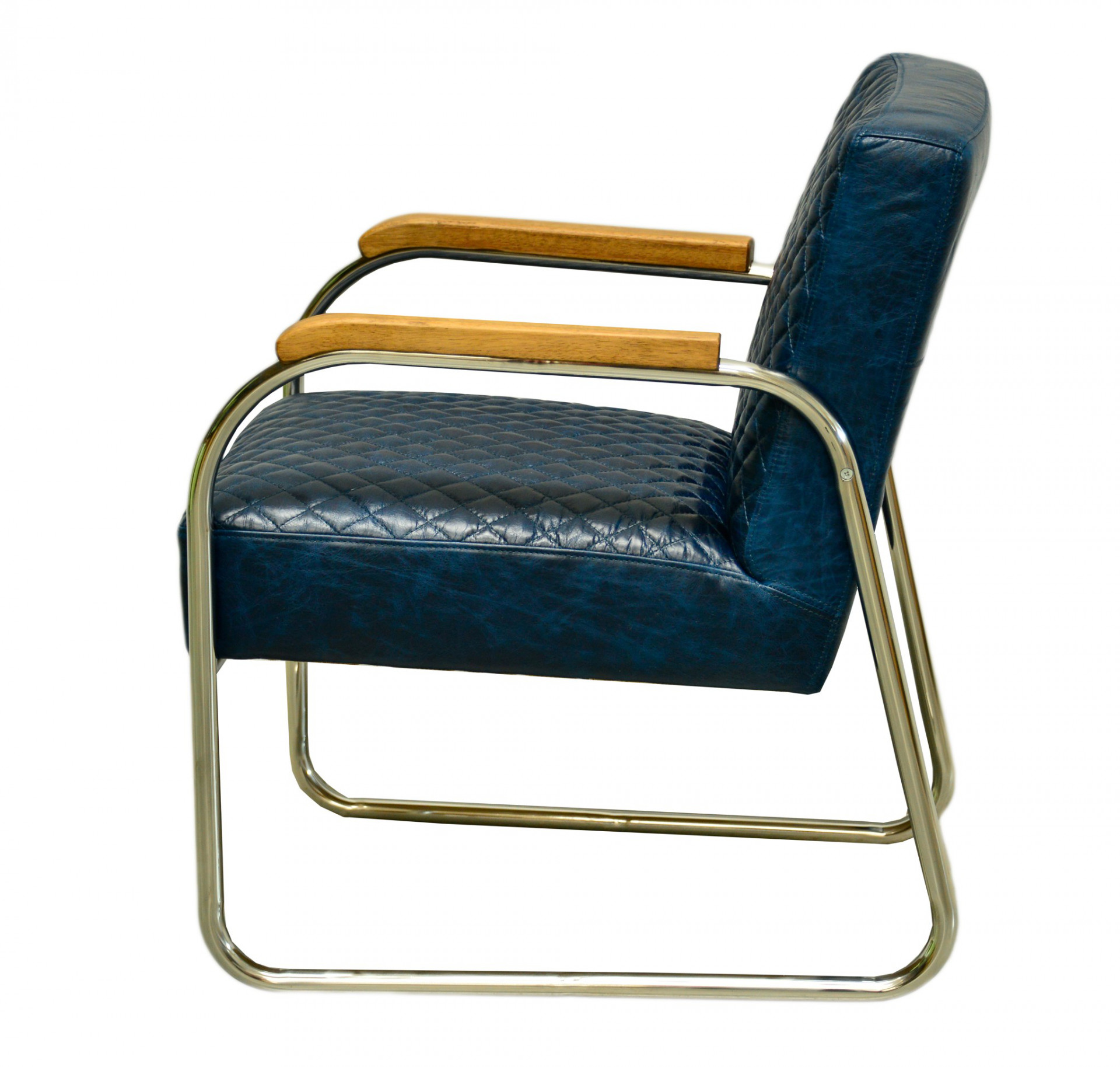 Jste vyznavači ne zas tak starého, ale dobrého retro stylu 70. let? Netradiční, exkluzivně zpracované křeslo Lily, může vkusně doplnit právě váš interiér. Tento kousek poskytne dostatečné pohodlí vám i vašim návštěvám a podpoří luxusní vzhled dané místnosti. Ocelová konstrukce a modrý kožený potah zajišťují jeho dlouholetou životnost a zaručují prvotřídní kvalitu. Světle hnědé rukojeti jsou vyrobeny z kvalitního dubového dřeva. Sháníte-li tedy komfortní a univerzální křeslo, které zůstane vaším společníkem po dlouhá léta, nepřehlédněte právě tento efektní i praktický kousek!
