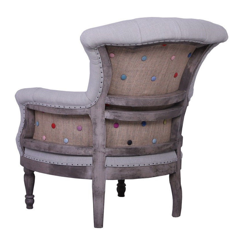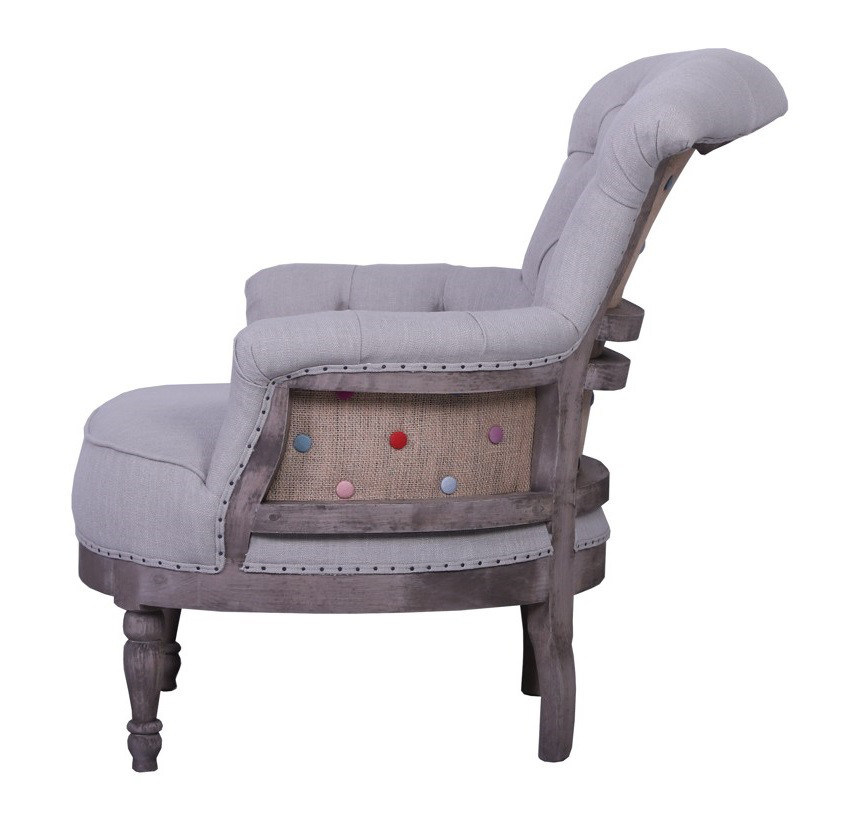 Křeslo Round nabízí osobitý vzhlem do stylového interiéru. Křeslo Round v provence stylu je potvrženo barevnými a vkusnými knoflíčky, na kterých každá návštěva bude žasnout. Masivní konstrukce a kvalitní látka činí z křesla trvalou ozdobu vašeho domu či bytu.