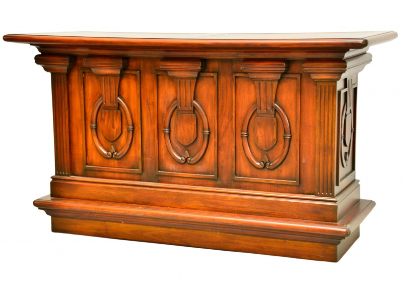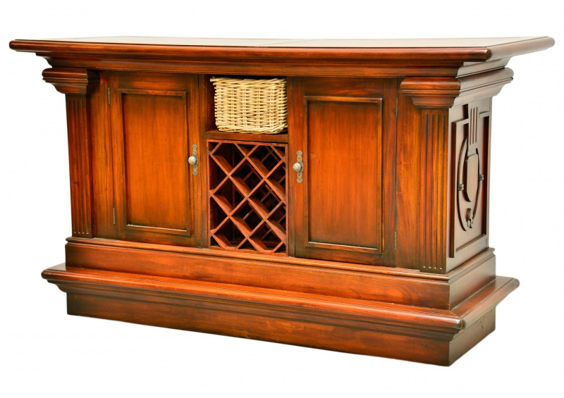 Pojměte při zařizování nové kuchyně tento nevyhnutelný úkol originálně! Odvažte se a pořiďte si tento záviděníhodný nadstandard, který se o tento odhodlaný úkol, v každém případě, jednoduše postará za Vás. S majestátním kuchyňským ostrovem Charleston, můžete snadno a okamžitě zapomenout na nudnou klasiku a všudy přítomný stereotyp. Stačí ho umístit do lůna Vaší kuchyně a on Vám zaručí nejen její nově nevšední a nezávislý vzhled, ale také ideální zázemí pro přípravu Vašich oblíbených delikates, která se díky němu ihned stane o poznání větší zábavou a potěšením! Ostrov je vyroben z nosného a kvalitního mahagonového dřeva, což zajišťuje jeho dlouholetou životnost, a je v dokonalém rustikálním provedení starobylého honosného stylu spadajícího do časů Viktoriánské Anglie. Kousek je v hnědé mahagonové barvě a precizně vyřezávané impozantní profilování na přední straně. Tento elegantní a velice stylový kousek obsahuje úložná prostor zakrytý dvěma dvířky, poličku se světlým ratanovým košíčkem a prostorem určeným pro skladování skleněných láhví s nápoji.