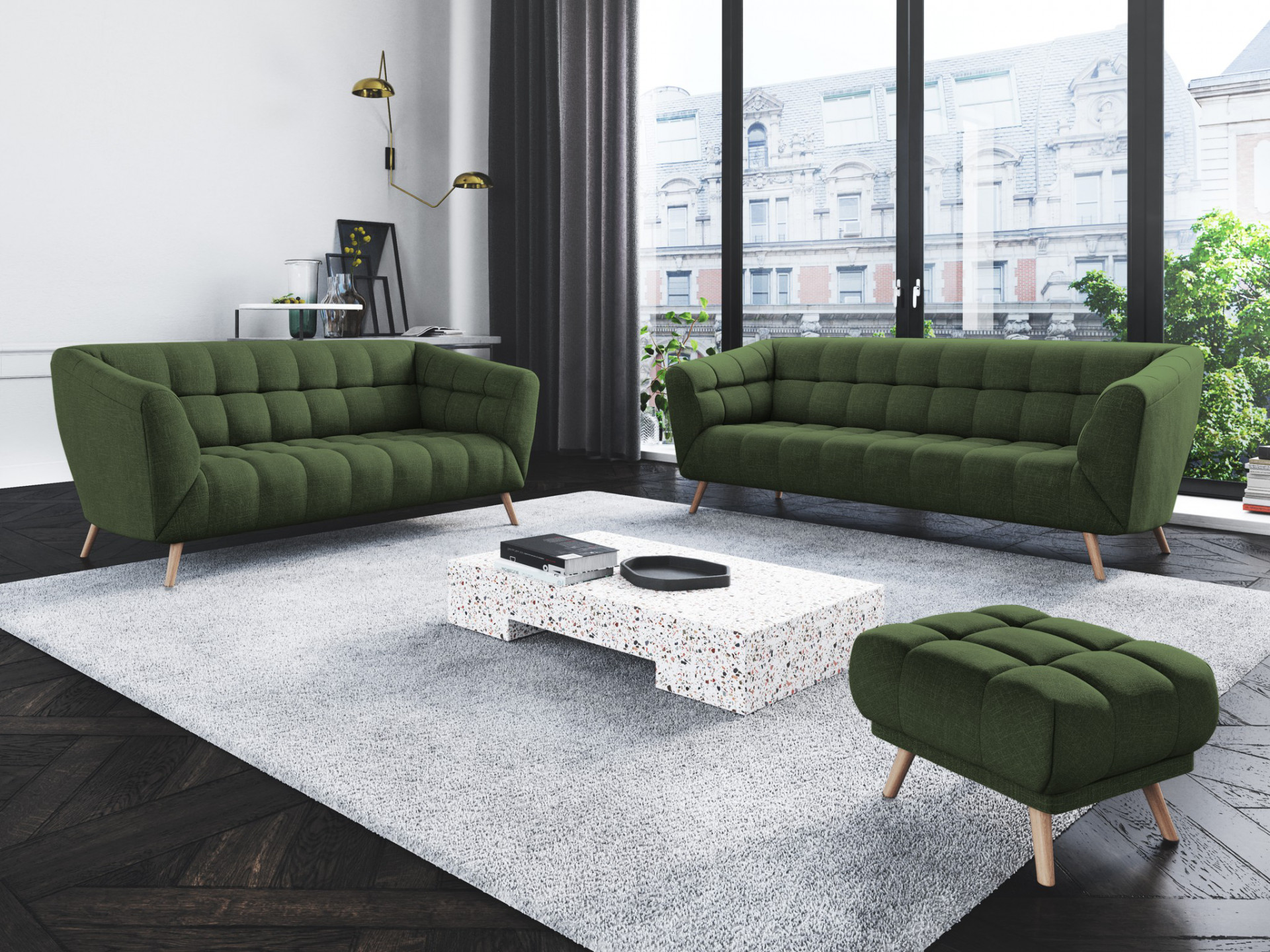 Pohovka Etoile v lahvově zelené látce je ta nejlepší volba pro toho, kdo požaduje designový kousek a zároveň praktické posezení do interiéru. Látka je velice kvalitní, odolná, nežmolkovatí, a je použita v tlustší vrstvě. Technická charakteristika látky je 260 g/m2,100 PES, Martindale test je 50 000 cyklů. Látka zůstane jako nová po mnoho let.