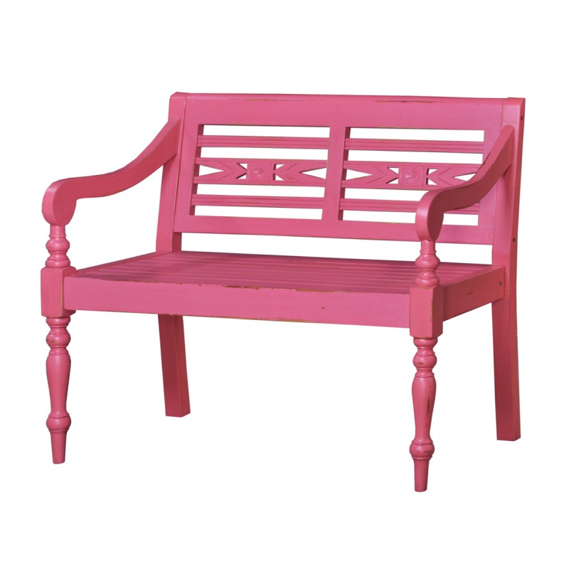 Lavice Garden Loveseat je vhodná jako solitér do Vašeho interiéru či do haly. Bava lavičky je růžová, lavička je subtilní a je vyrobena z mahagonového dřeva.