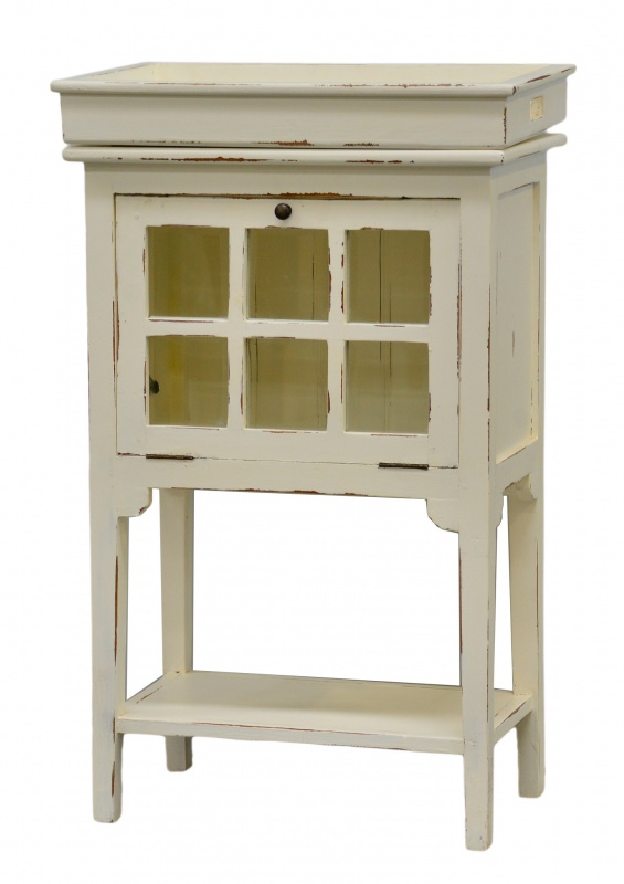 Znáte barové stolky z amerických filmů, se skříňkou na kvalitní whisky či burbon, u kterých míchají hostům drinky rovnou v obývacím pokoji? Nemusí to být jen představa, dopřejte si tento komfort i vy! Krásný bílý Provence barový stolek s pracovní plochou a úložným prostorem se skleněnými dvířky vás dostane svou elegancí a praktičností.