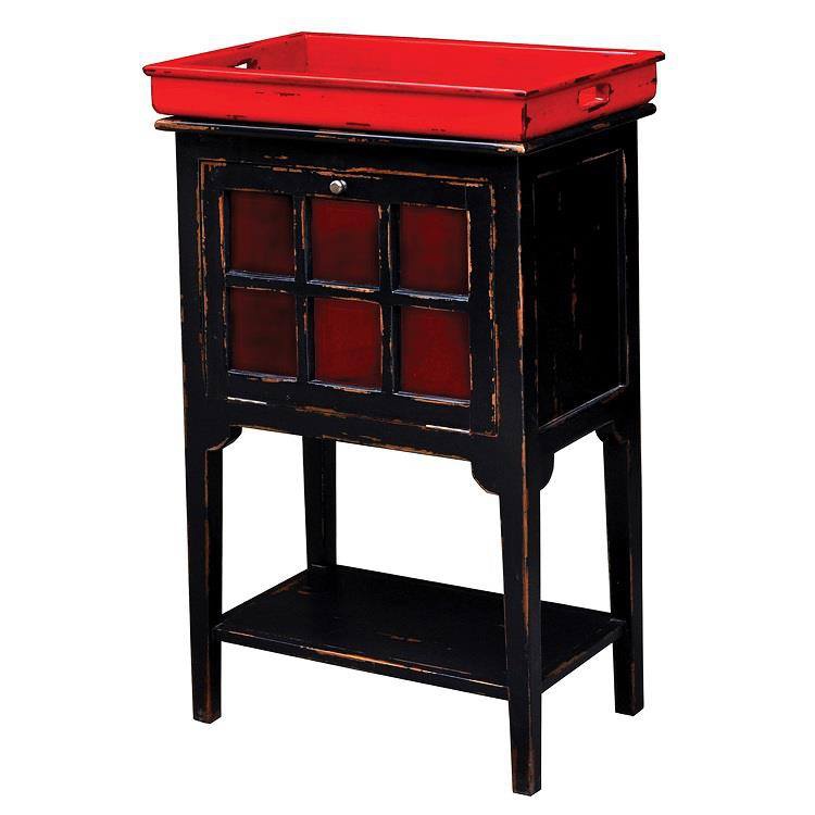 Minibar Porter v černo-čevené kombinaci, odjimatelný podnos. Minibar je vyroben z mahagonového dřeva.