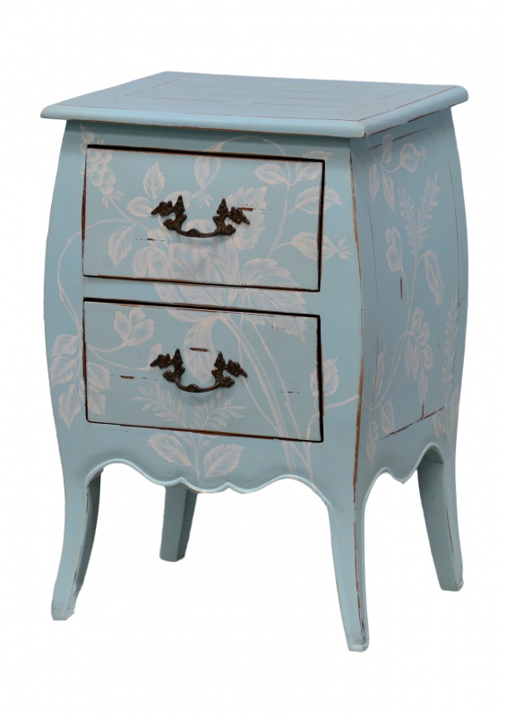 Chcete-li dodat své ložnici šmrnc, ale bojíte se, že to přeženete, zkuste to jinak, než barevnými tapetami nebo výrazným povlečením! Pořiďte si noční stolky Carina v provence stylu, které se díky své jedinečnosti stanou krásnou ale nevtíravou dominantou vaší ložnice. Stolek je vyroben z mahagonového dřeva, má dvě praktické zásuvky s elegantním kováním a jednoduché romantické vyřezávání ve spodní části. Stolek je vyroben ve modré barvě s jemnou patinou, zdobený nádhernými bílými malbami květin, které zaujmou na první pohled. Nebojte se experimentů a vyzkoušejte tento netradiční kousek, krásně zapadne do světlého i tmavého interiéru!