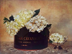 Obrázek 30x30, bílý květ, rám bílý s patinou
