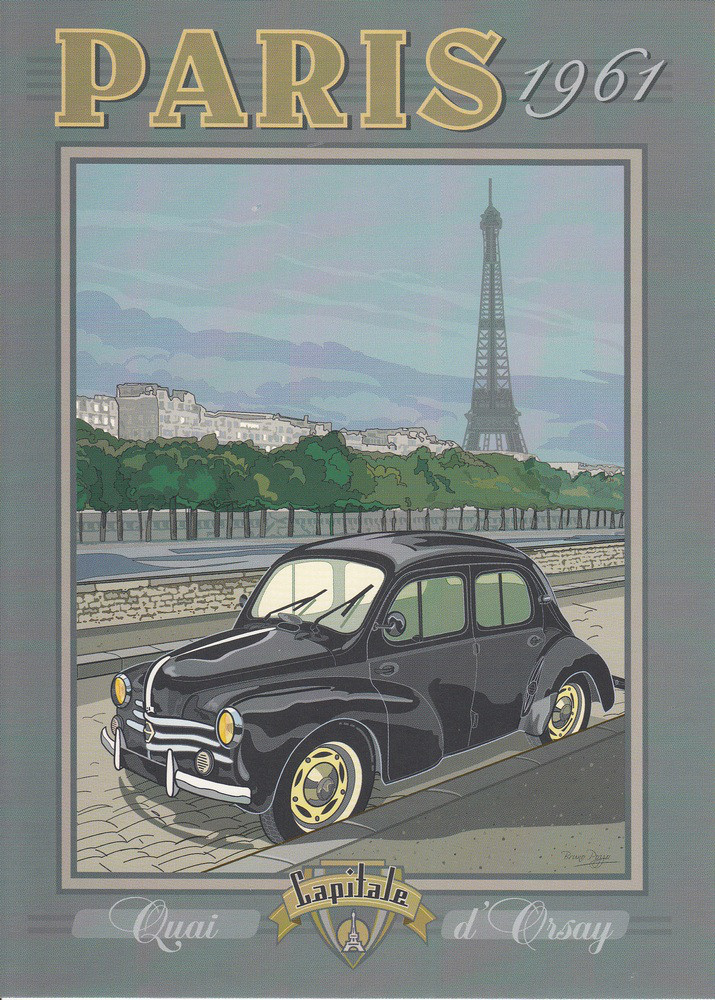 Obrázek 13x18, paris 4CV 1961, rám bílý s patinou