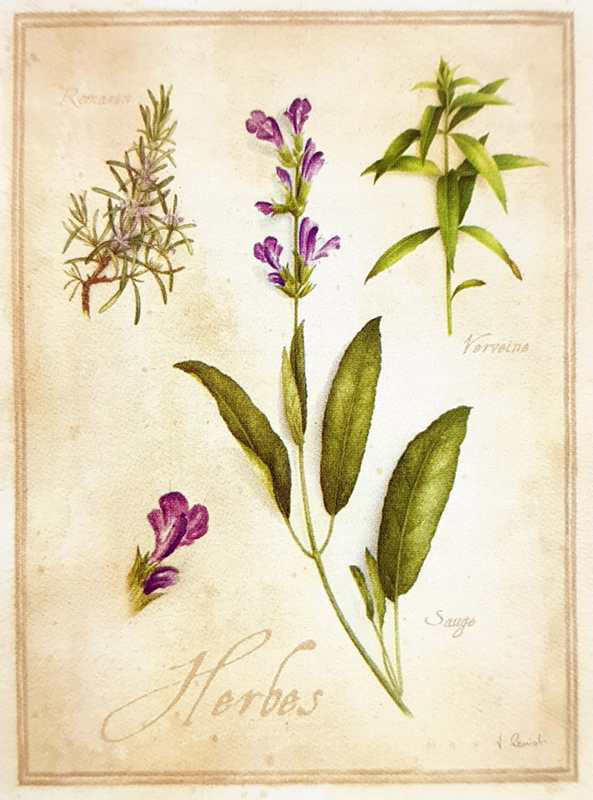 Obrázek 13x18, rozmarýn, rám bílý s patinou