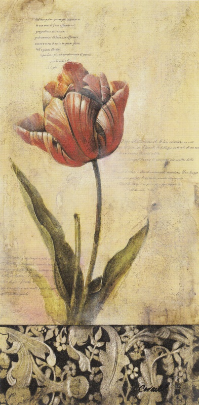 Obrázek 13x25, botanika - tulipán I., rám sv. dub - červotoč