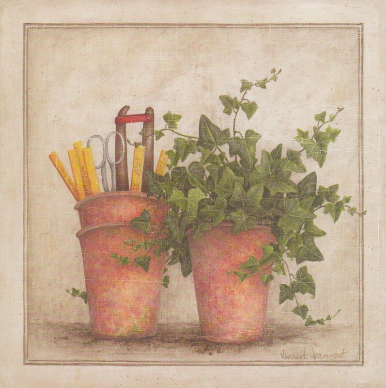 Obrázek 14x14, břečťan II., rám bílý s patinou