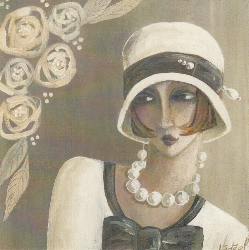 Obrázek 14x14, dáma I., rám bílý s patinou