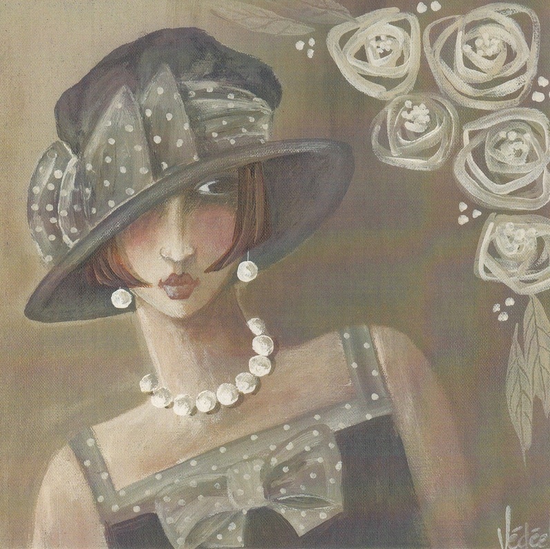 Obrázek 14x14, dáma II., rám sv. dub - červotoč