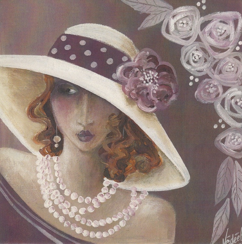 Obrázek 14x14, dáma IV., rám bílý s patinou