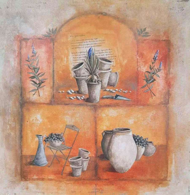 Obrázek 14x14, zahrada I., rám bílý s patinou